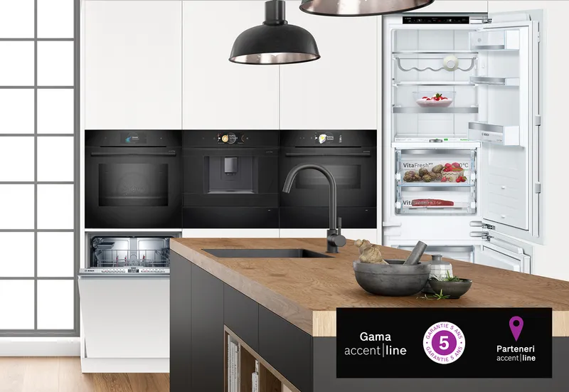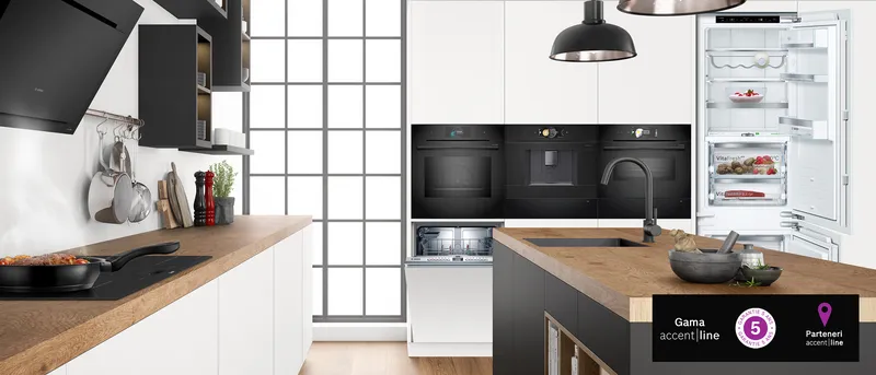 Cu gama accent line de la Bosch, cu comenzi intuitive și extrem de ușor de folosit, te bucuri de confort complet în bucătărie. Design simplu și funcții practice — fără lucruri inutile. accent line e gândită ca să-ți simplifice viața de zi cu zi.